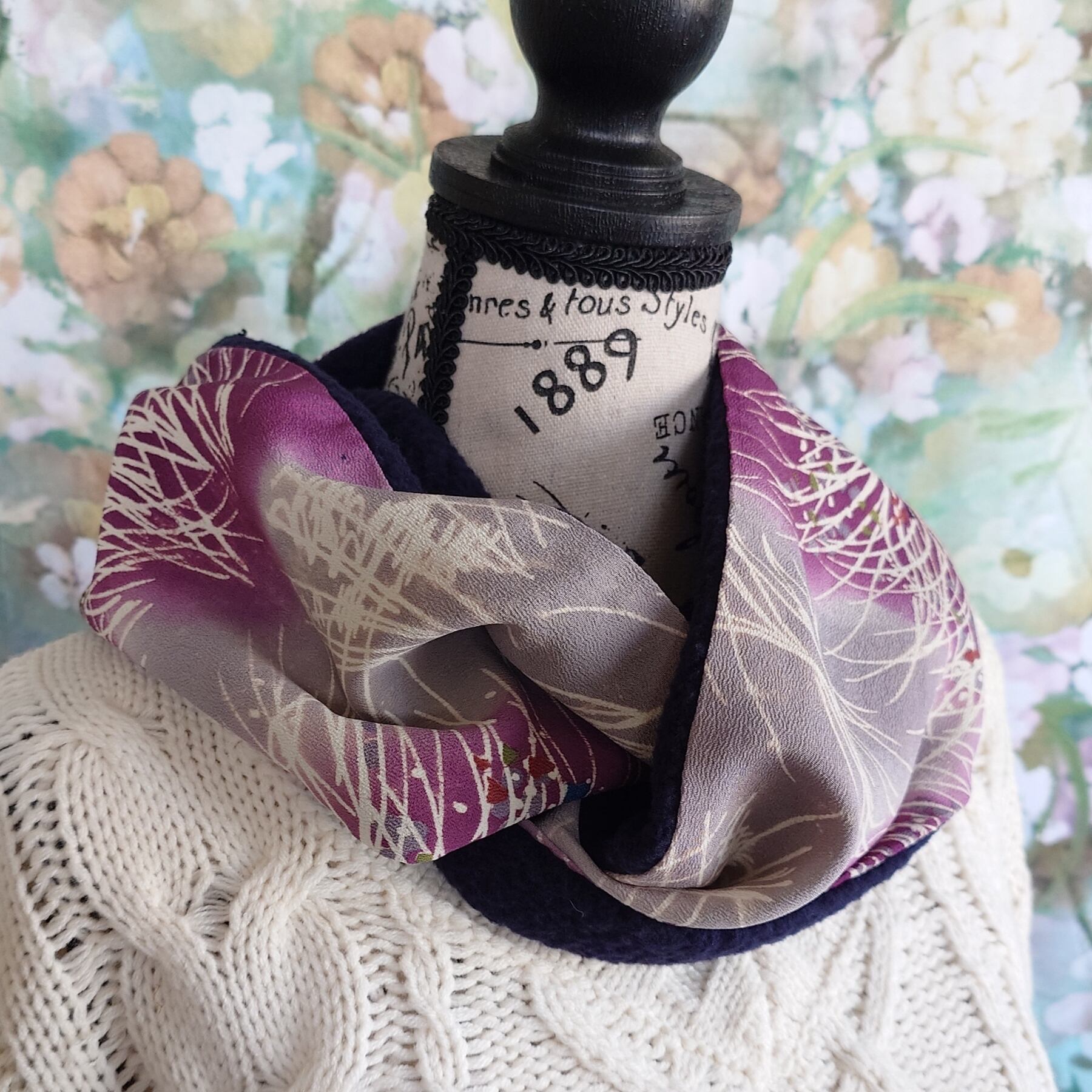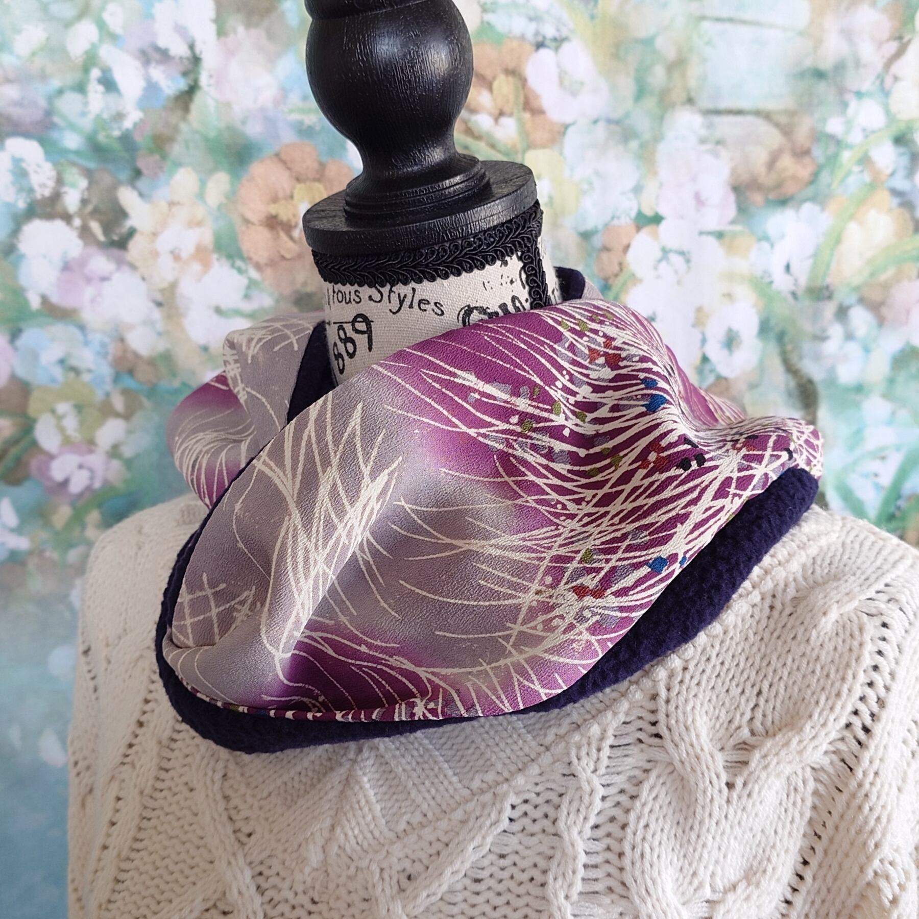 su-9 スヌード 小紋 & ポリ系ボアニット 濃紺 着物リメイク