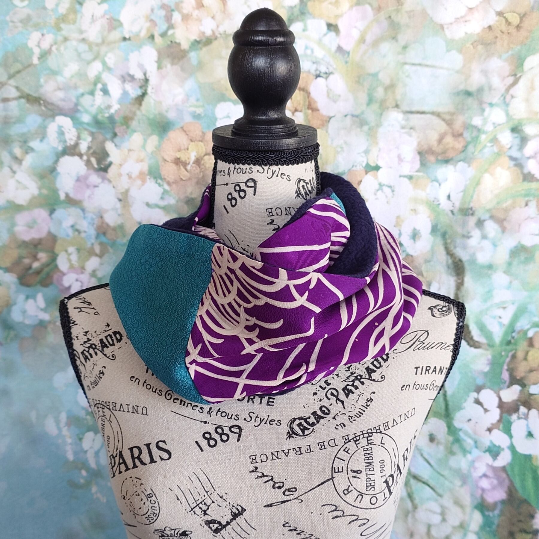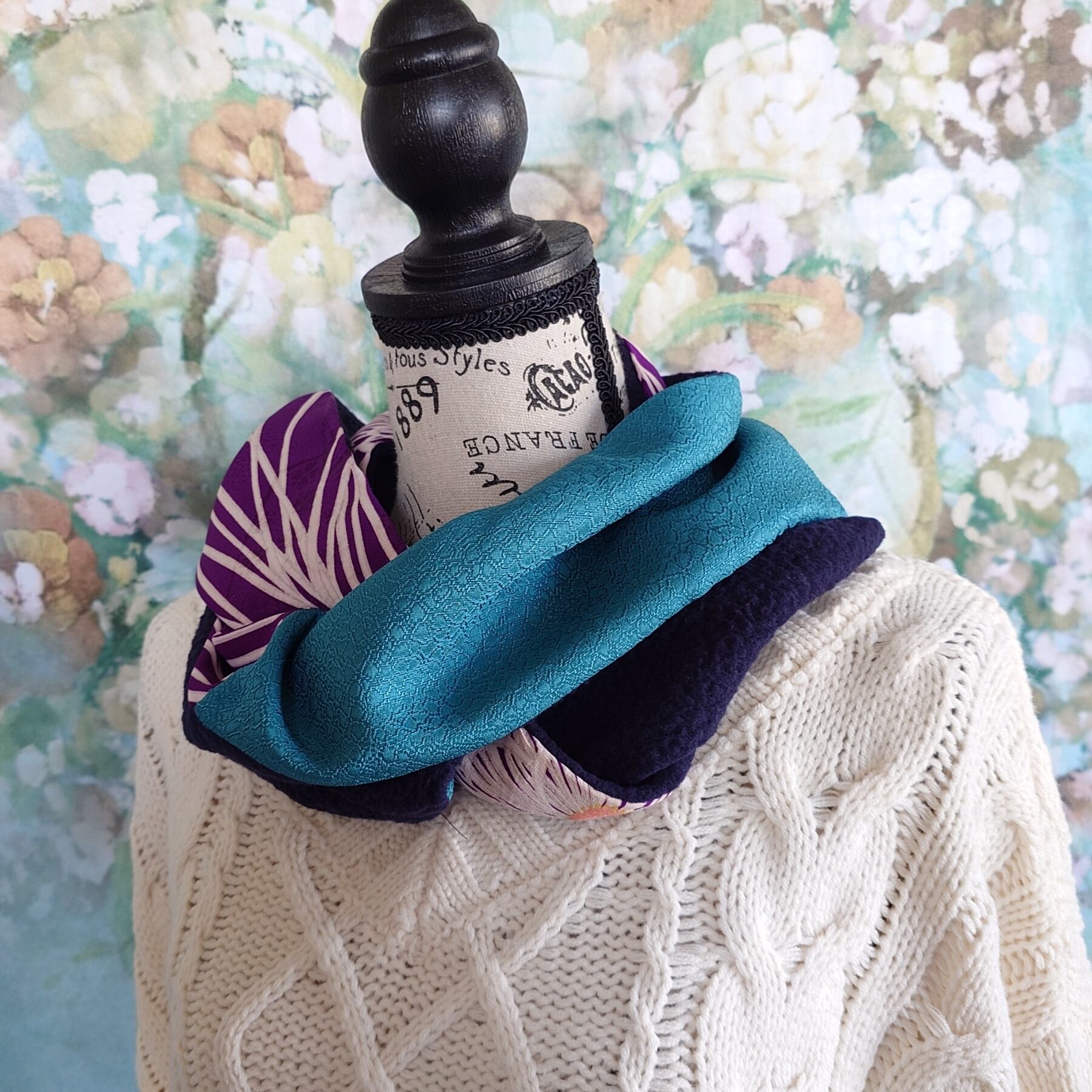 su-10 スヌード 小紋 & ポリ系ボアニット 濃紺 着物リメイク