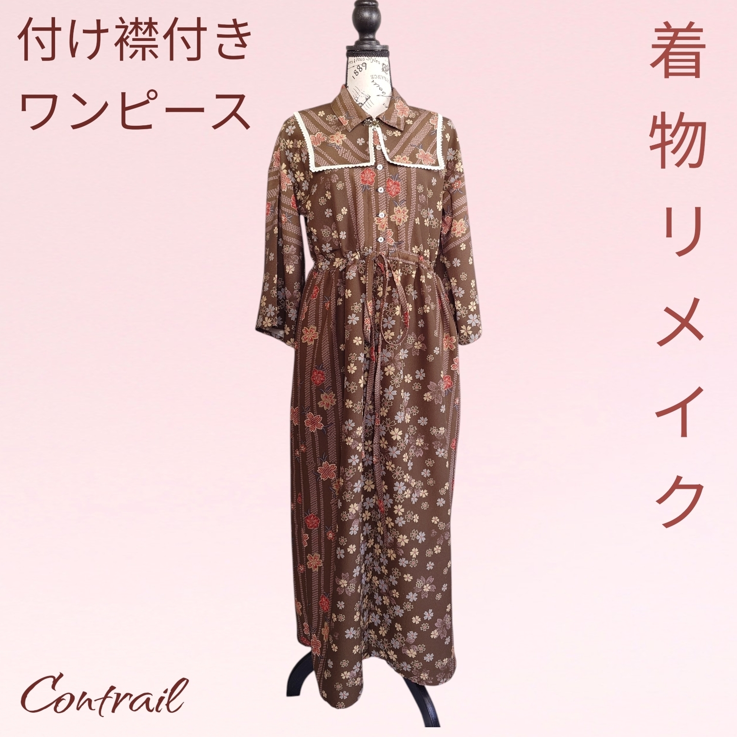 d99 重ね衿ワンピース ベルト付き 着物リメイク 風景