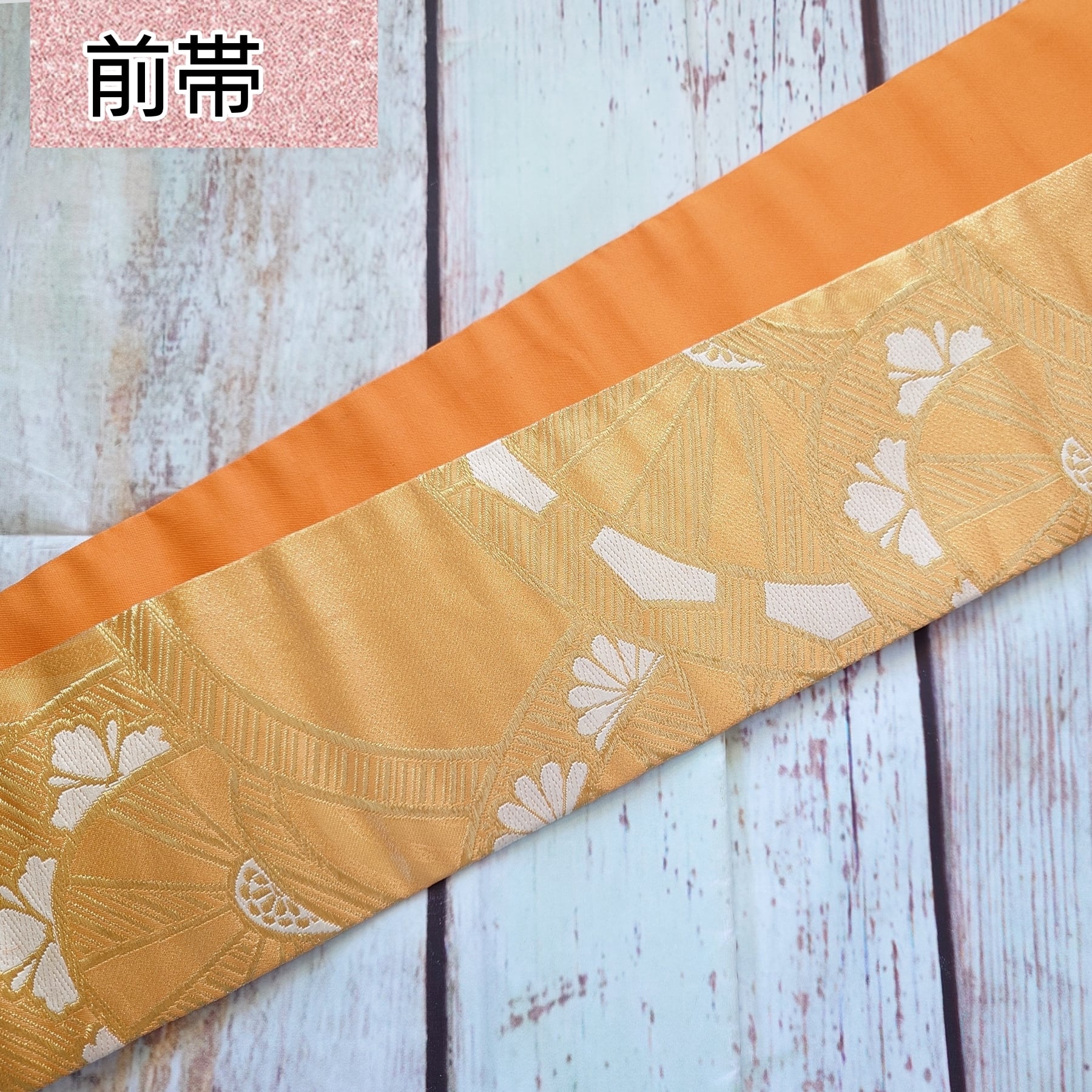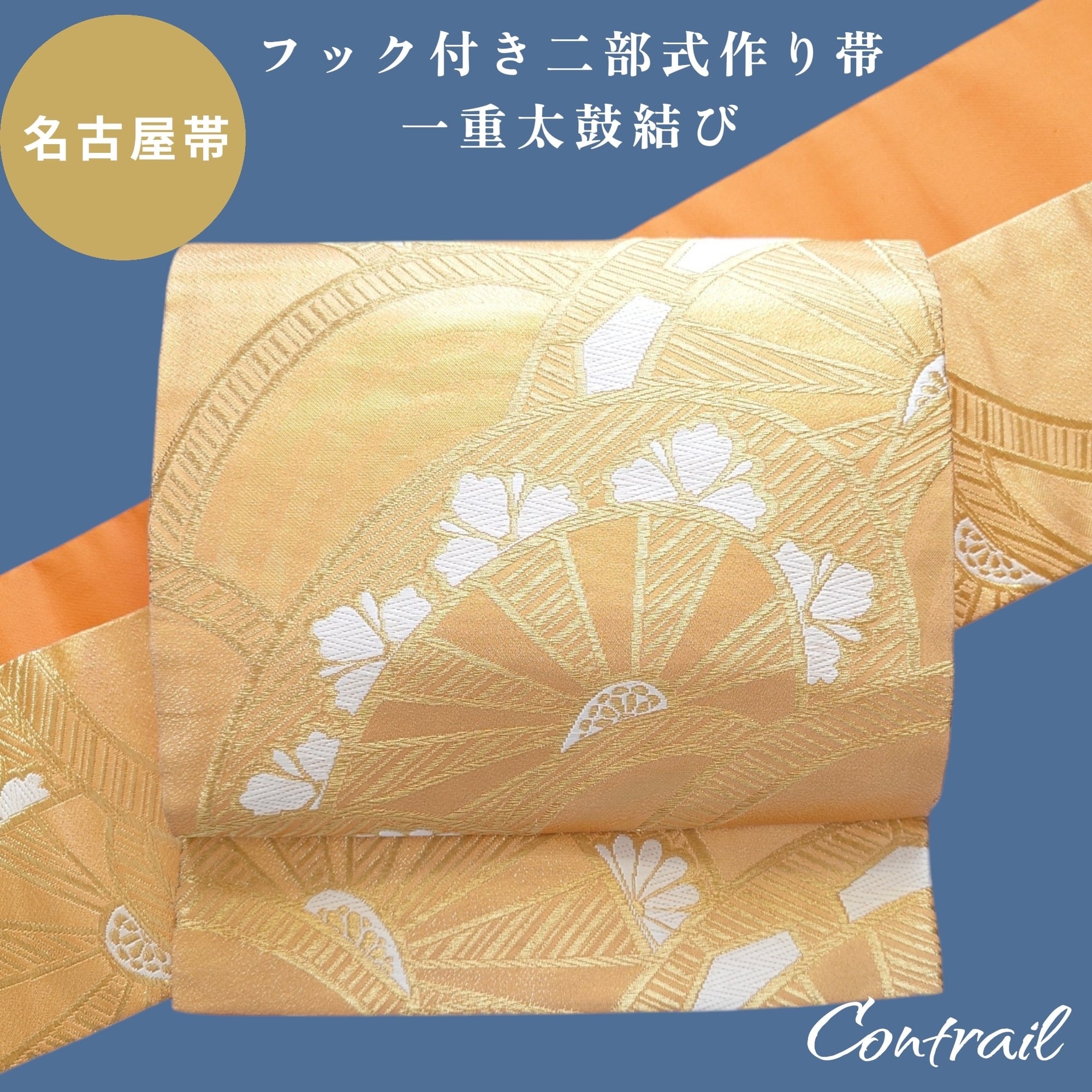 ob207 フック付 ワンタッチ二部式作り帯 一重太鼓結び 名古屋帯 オレンジ