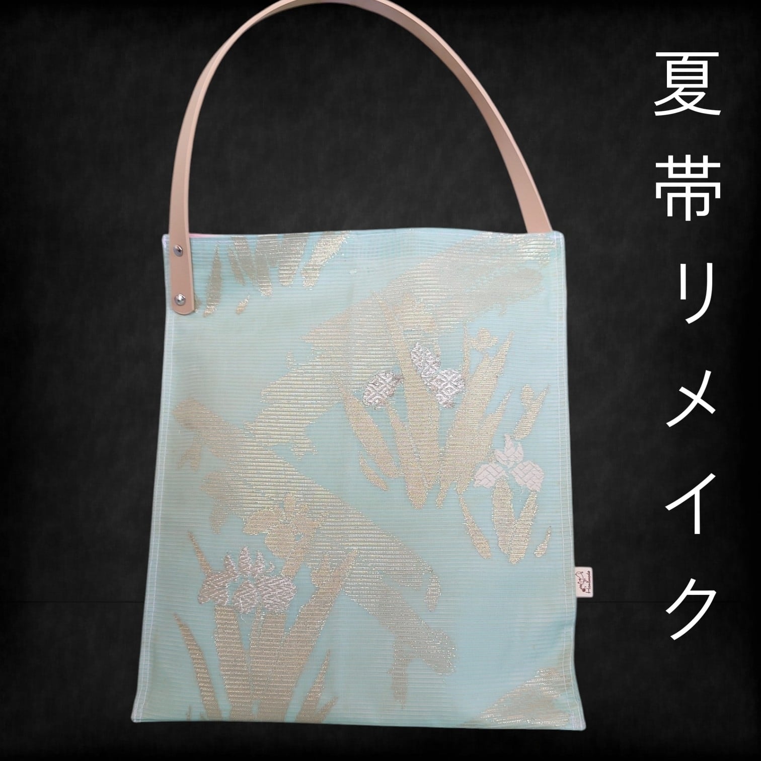 b13 あやめ柄の夏帯リメイク 涼やかなマチなしトートバッグ
