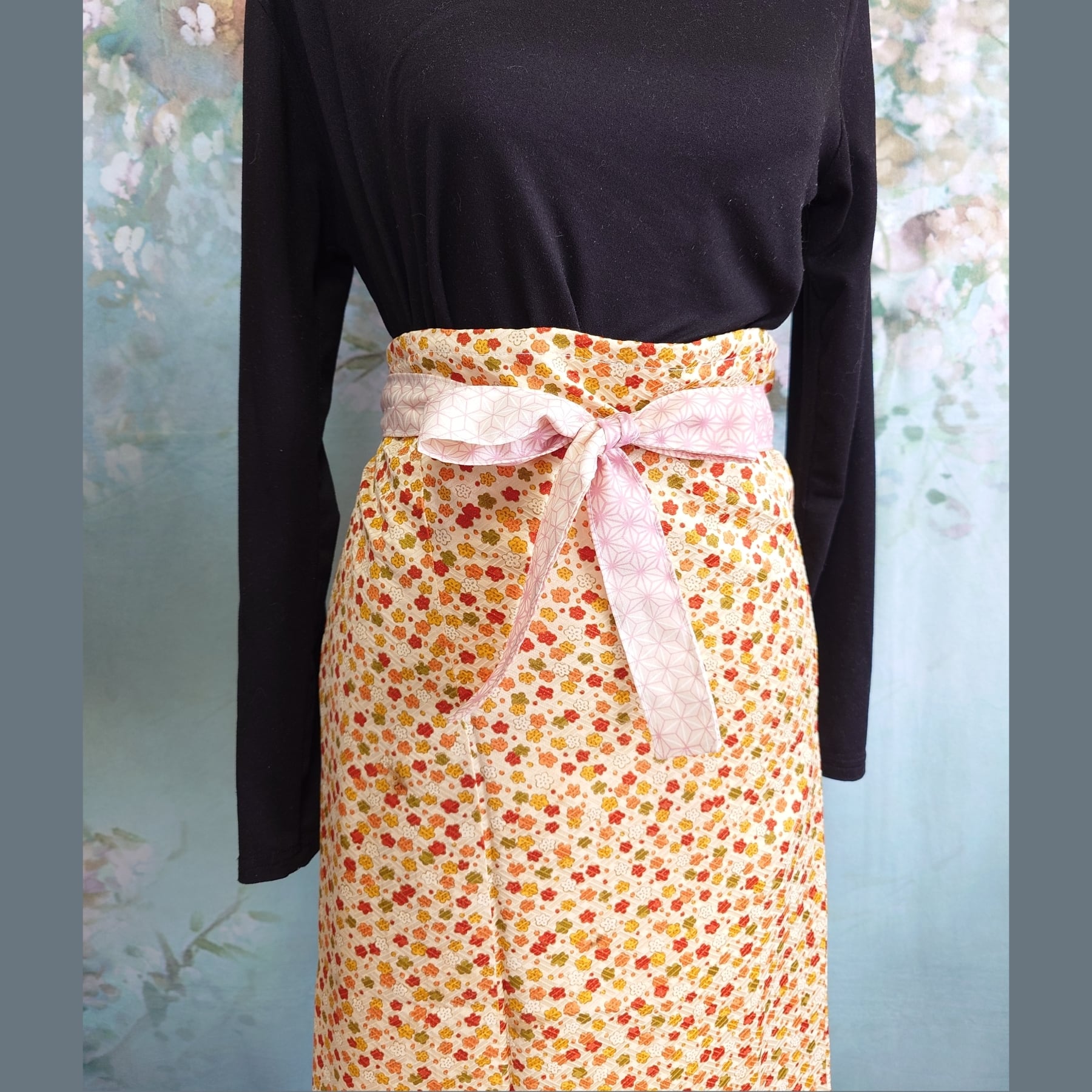 腰に巻いてリボンで結ぶだけの簡単巻きスカート仕様。
