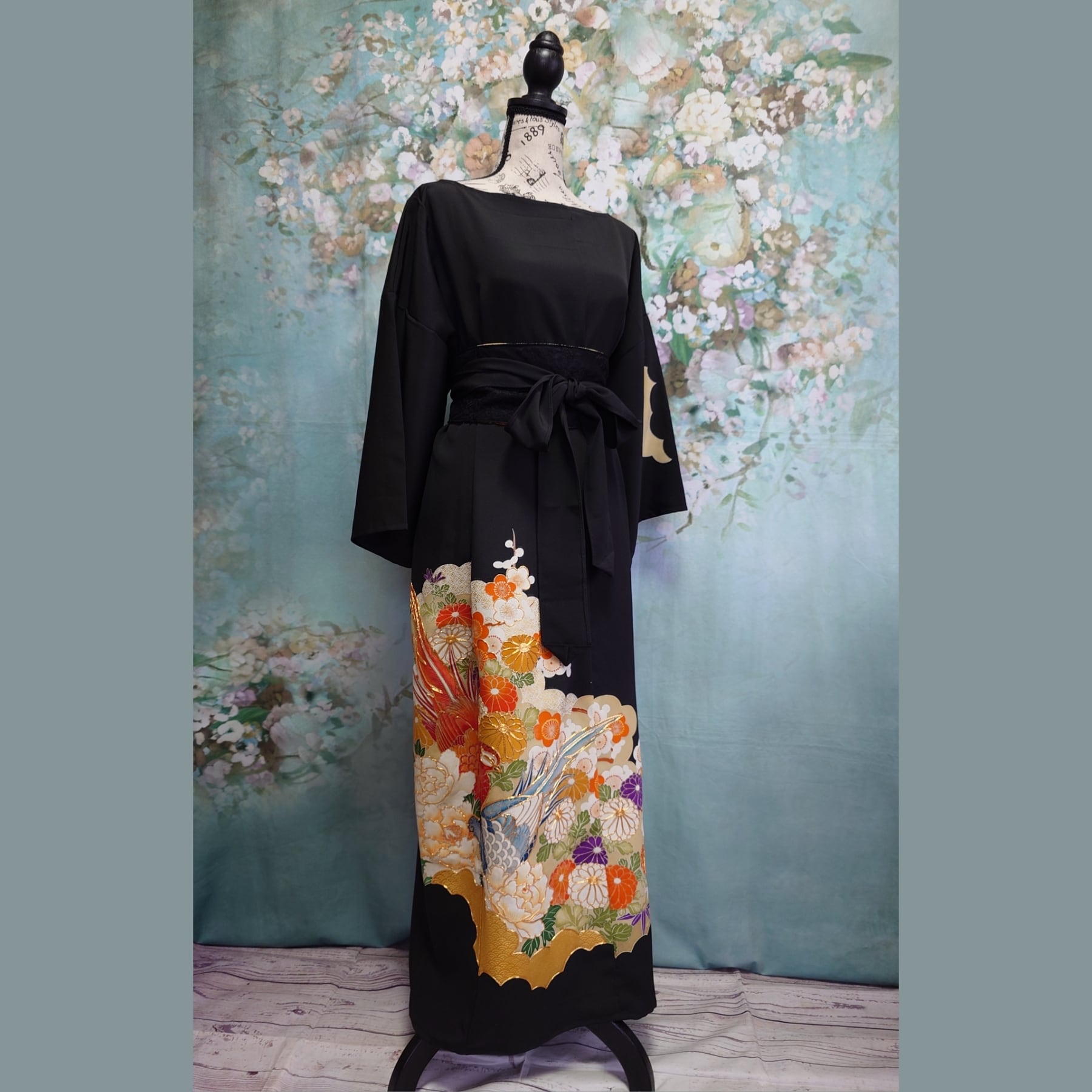 伝統的な黒留袖を丁寧にリメイクした、モダンでエレガントな着物ドレスです。