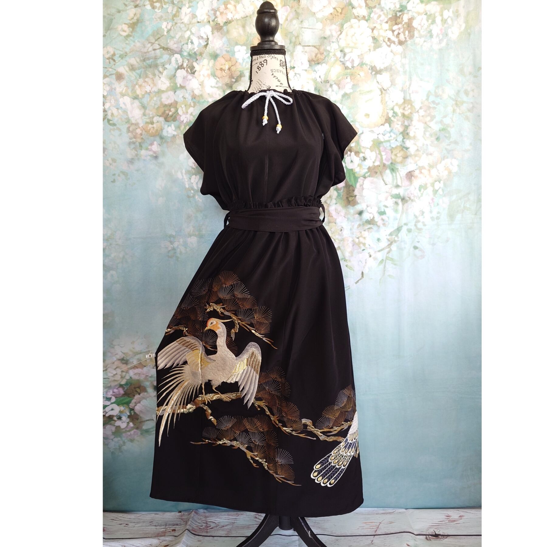 d120 着物リメイク セットアップ 和洋折衷コーデ 黒留袖 ワンピース風 マキシ丈 ドレス