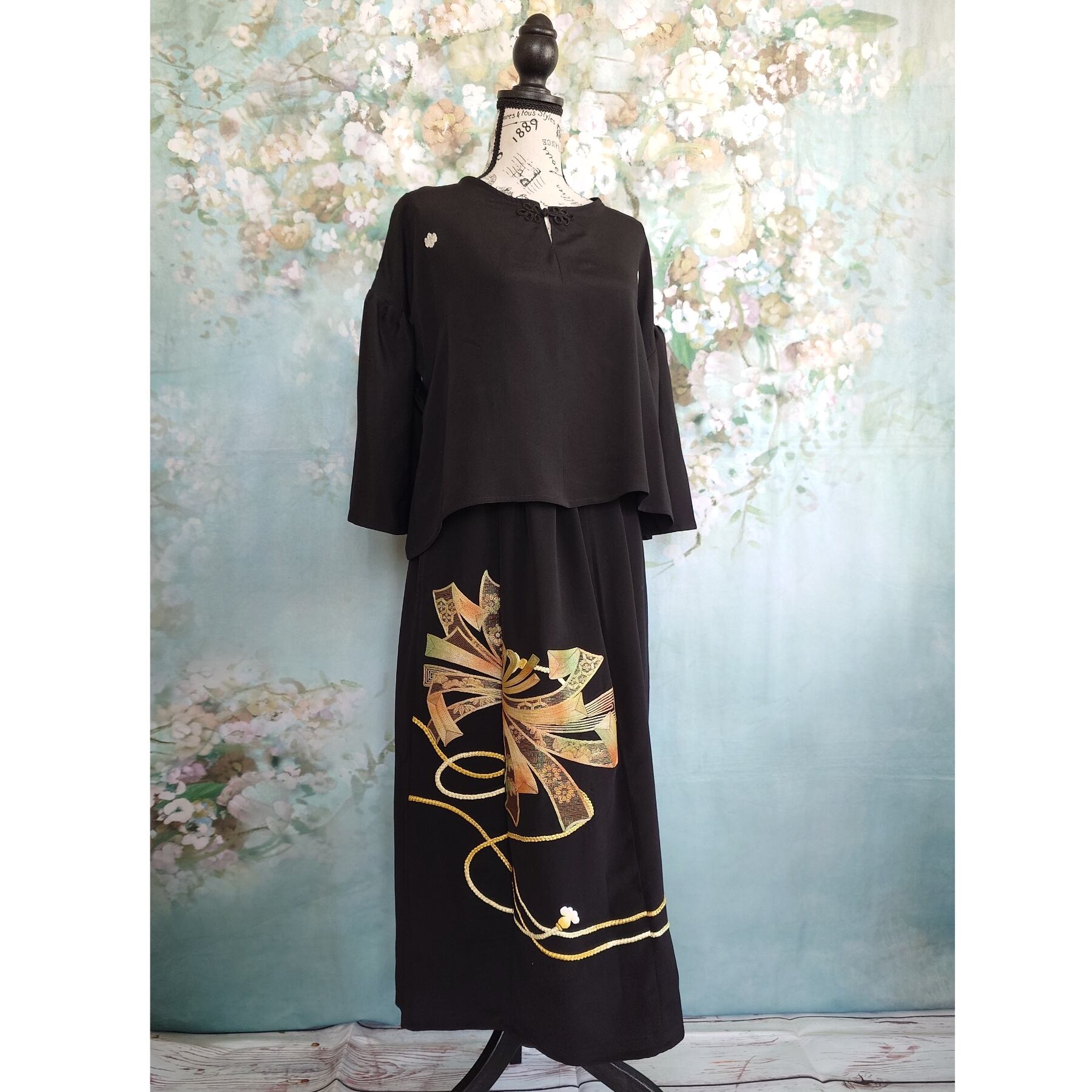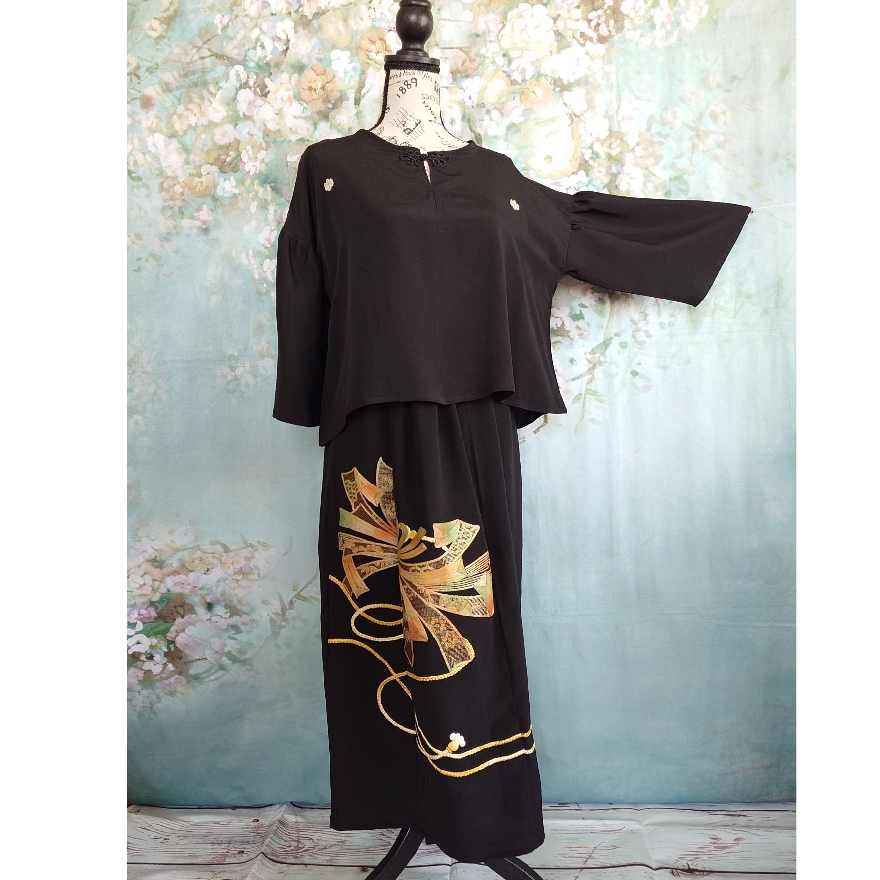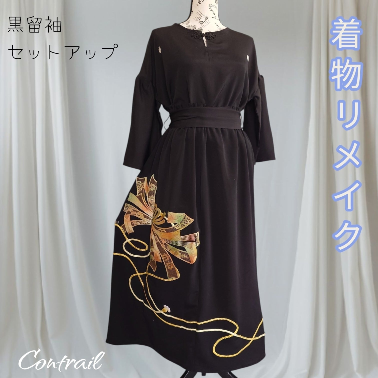 d121 着物リメイク セットアップ 和洋折衷コーデ 黒留袖 ワンピース風 マキシ丈 ドレス