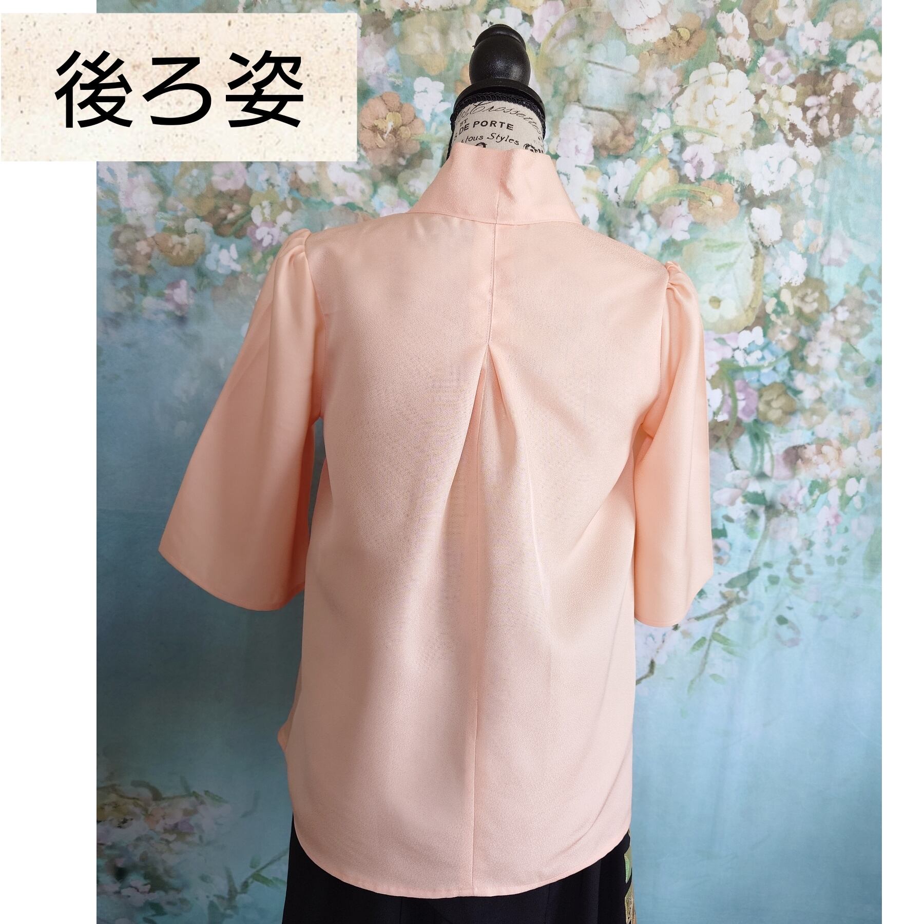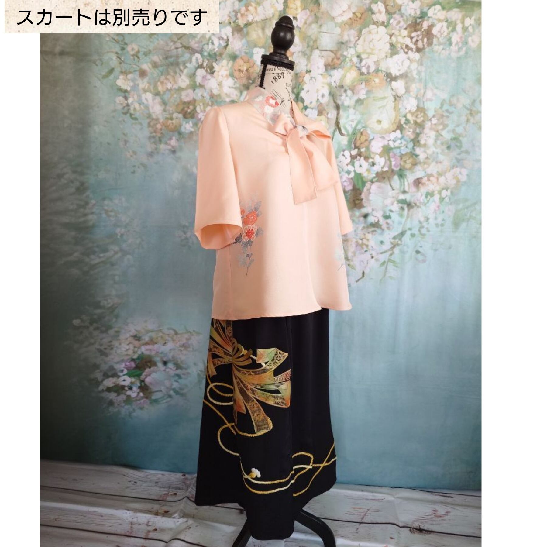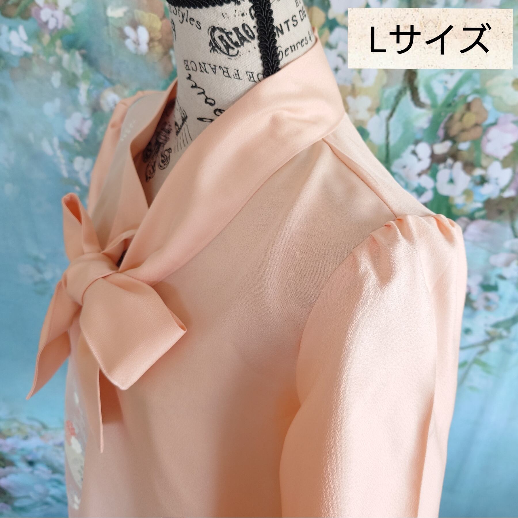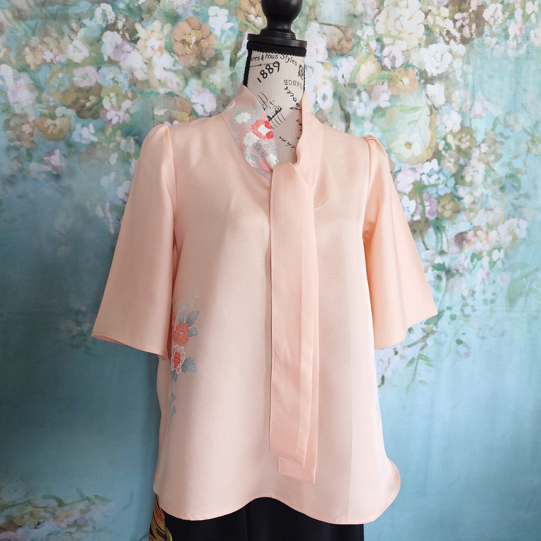 t38 着物リメイク ボウタイブラウス 七分袖 フリーサイズ 一点モノ