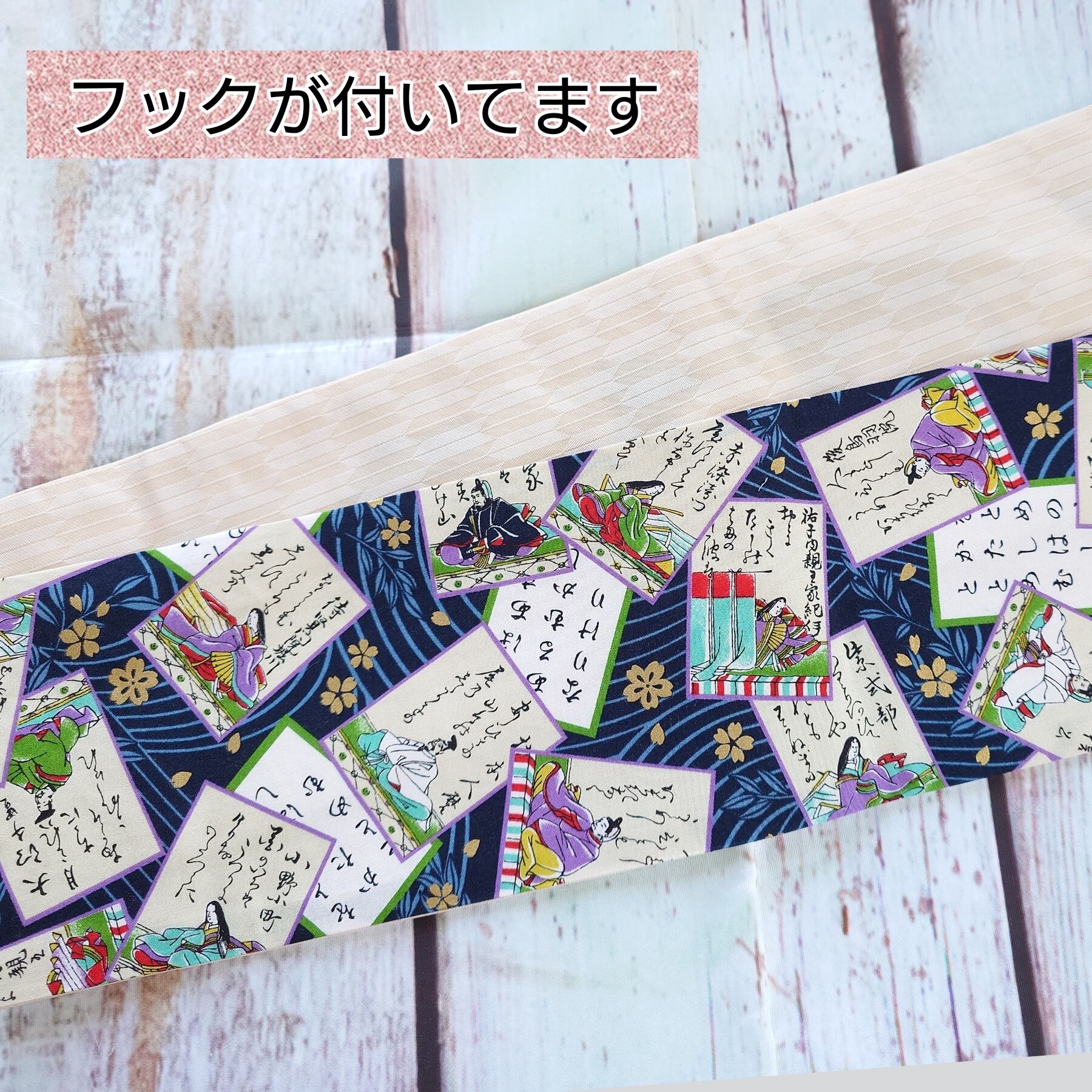 ob202 フック付き ワンタッチ二部式作り帯 一重太鼓結び オリジナル説明書付 百人一首