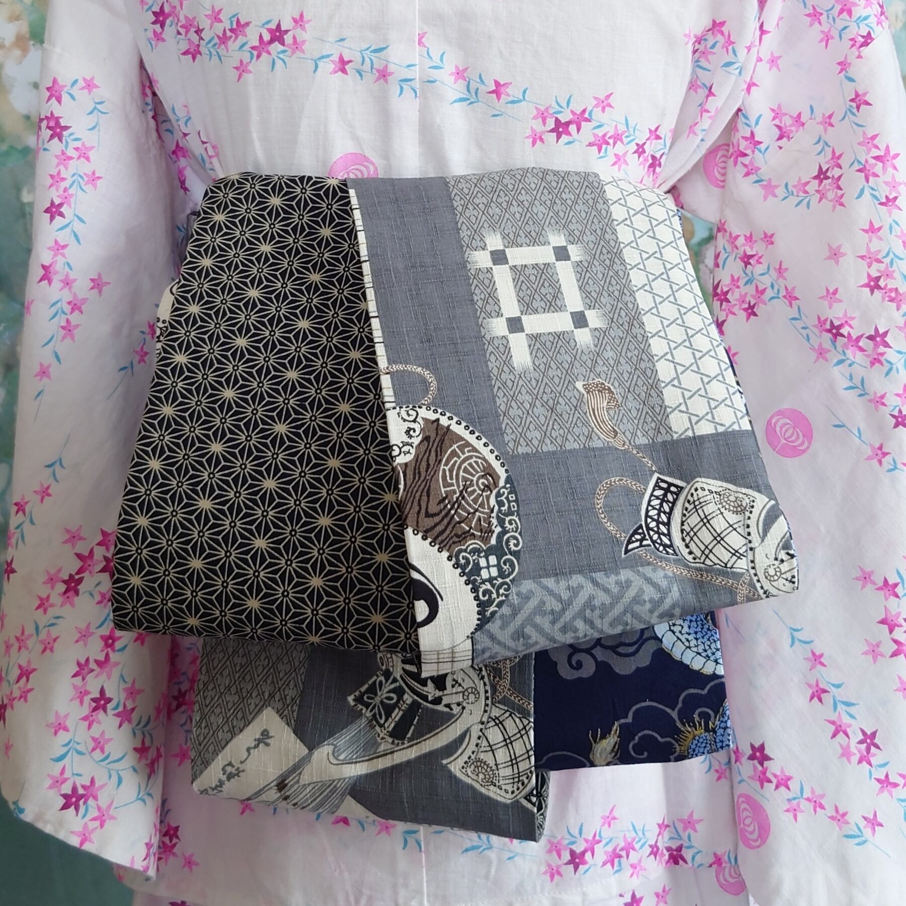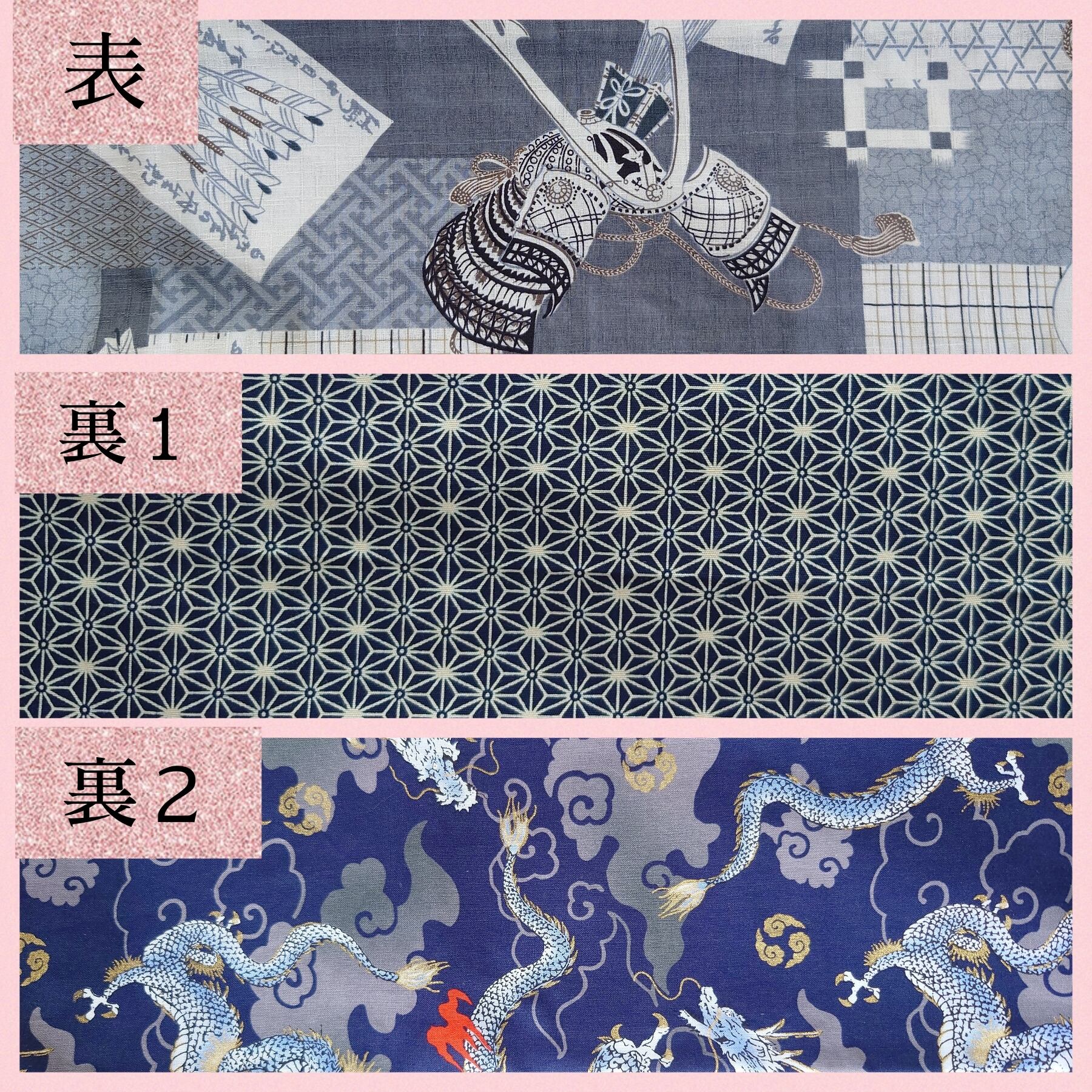 hob62 大人の半幅帯 兵児帯 リバーシブル ハンドメイド 浴衣 武士 鎧兜