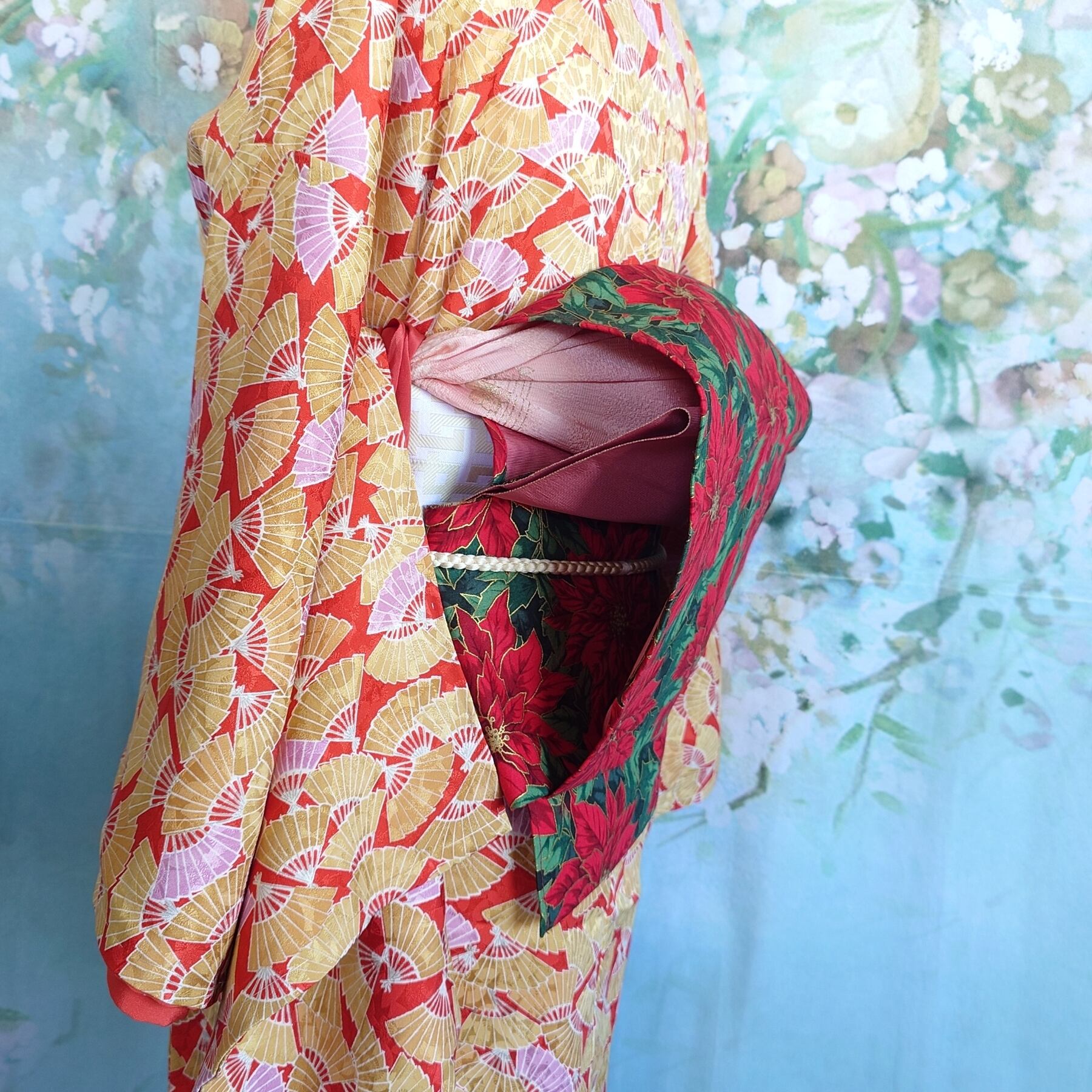 裁断・縫製の際は、細心の注意を払っておりますが、古布の為、どうしても避けられない色あせ・シミ・ほどき糸の残り・とき跡等がある場合がございます。
