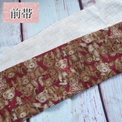 薄い帯の上に可愛らしい綿のクリスマス柄布を縫い、リメイクした簡単装着の