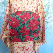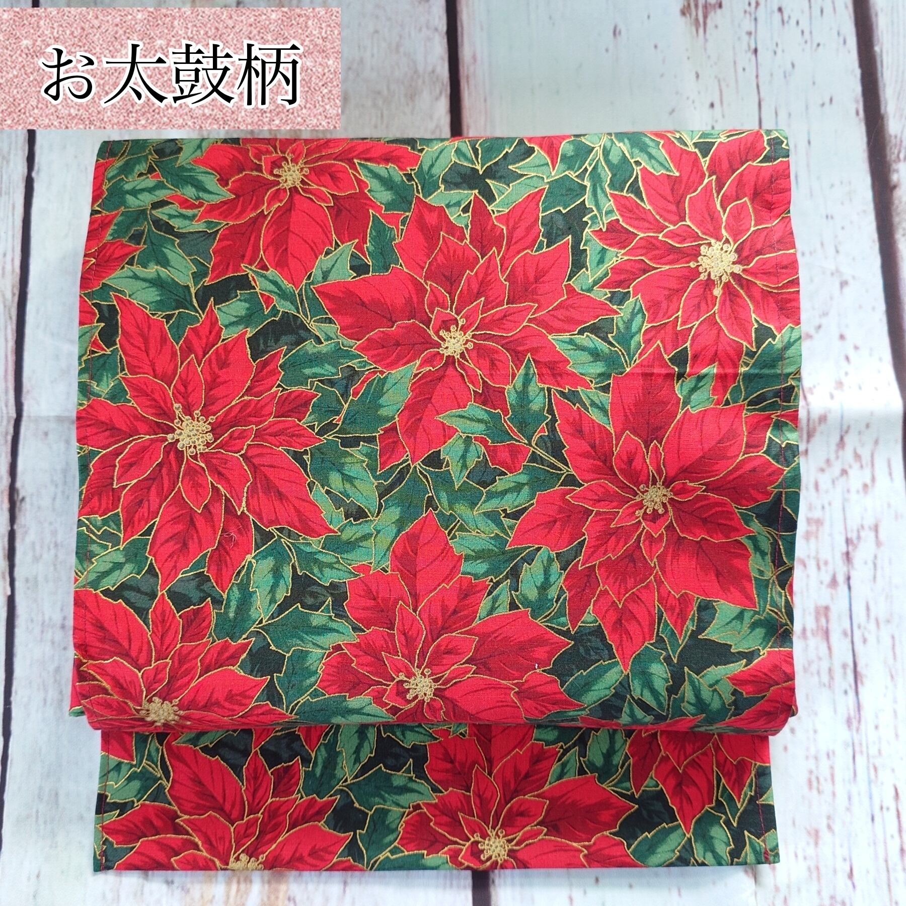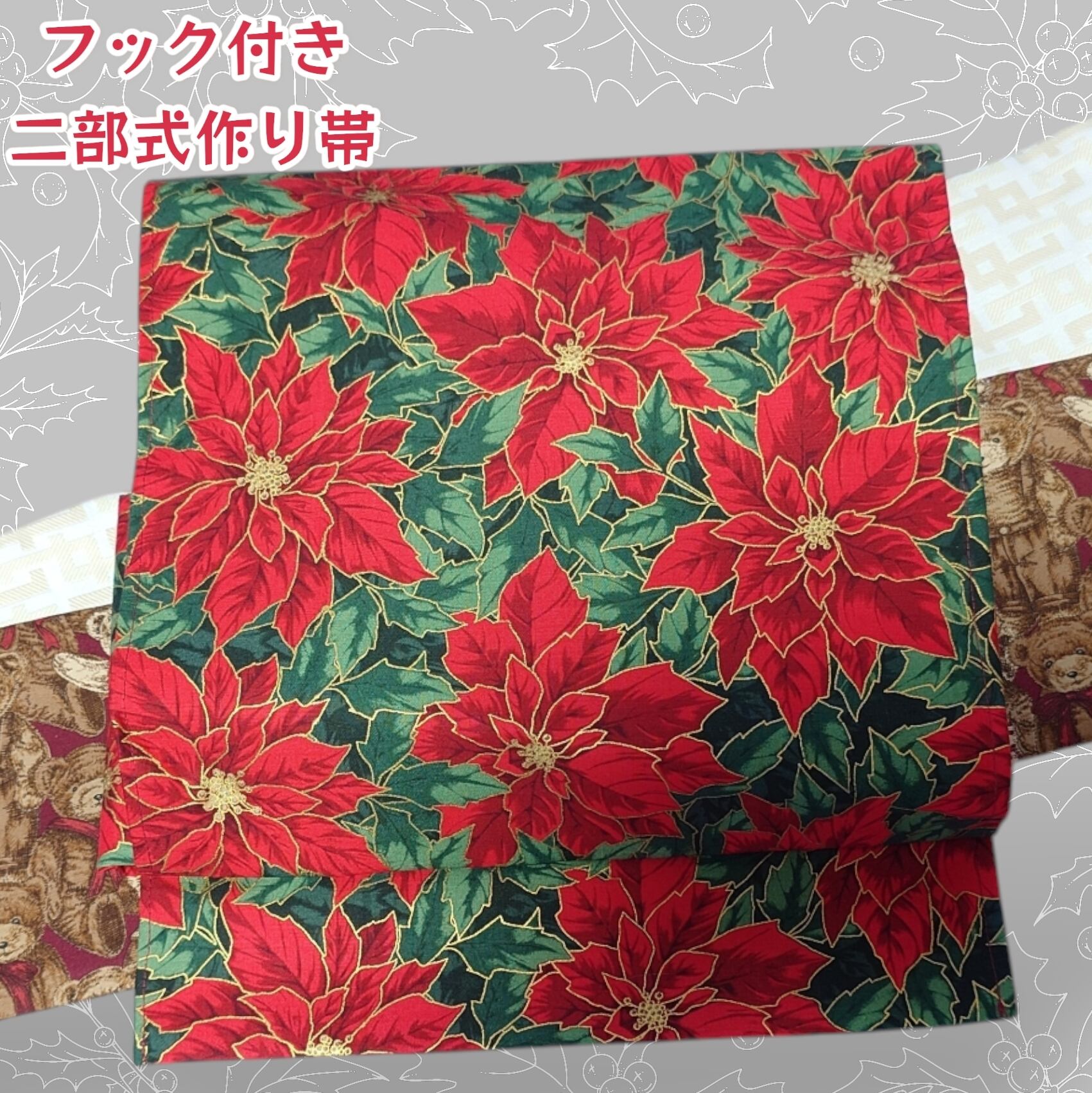 ob107 フック付き ワンタッチ 二部式作り帯 ポインセチア クリスマス